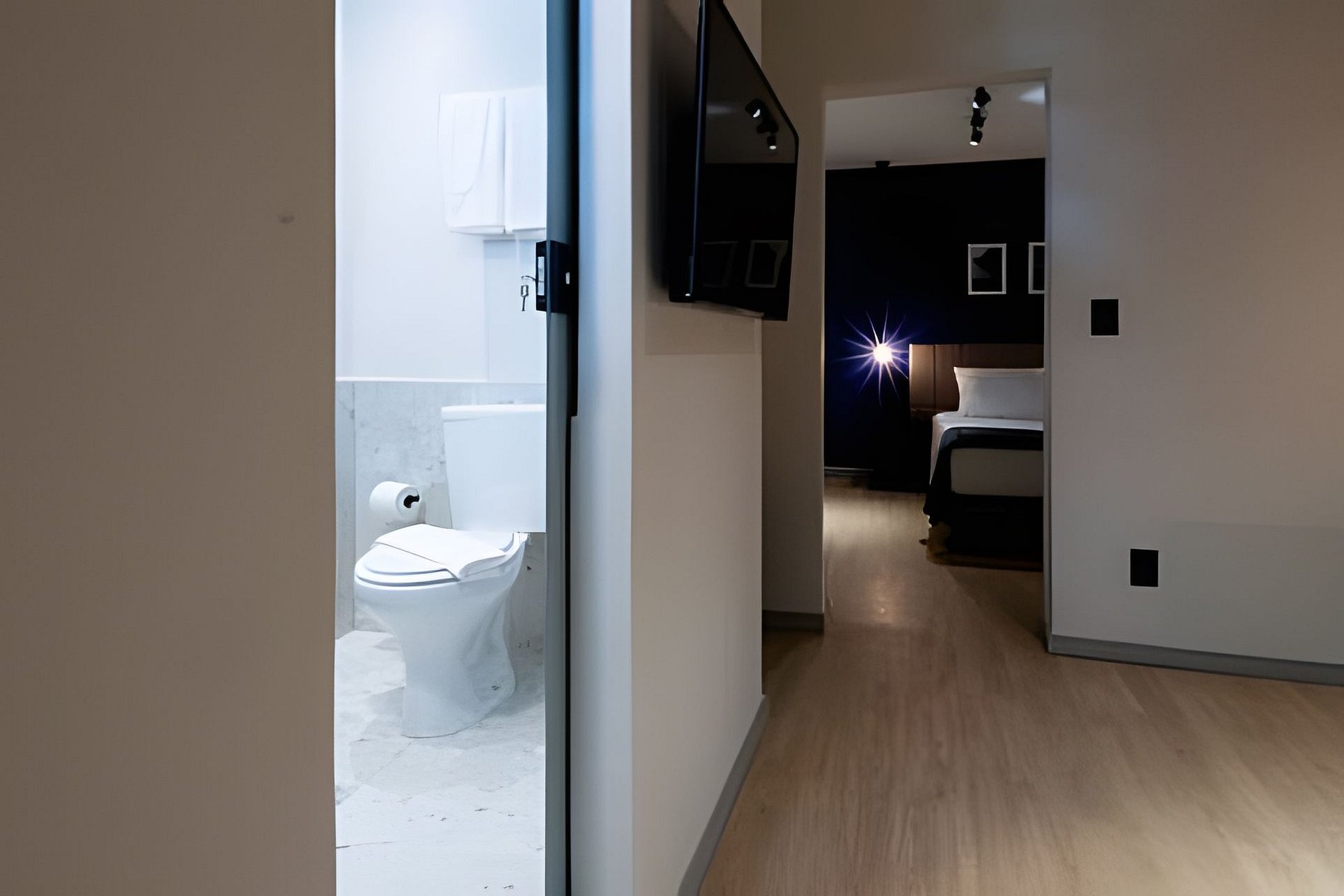 O Flat possui uma cama Queen e um sofá-cama (o enxoval para o sofá-cama é disponibilizado a partir do 3º hóspede), ar condicionado em ambos os cômodos, TV Smart, mesa exclusiva para trabalho e frigobar.